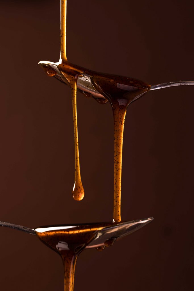 Vanilleextrakt entsteht durch das monatelange Ausziehen echter Schoten in Alkohol. Anschließend wird eine Zuckermasse hinzugefügt und das Ganze so lange erhitzt, bis der Alkohol verflogen ist. Ein Teelöffel Extrakt ersetzt meist das Mark einer ganzen Schote. Die Flüssigkeit sollte klar bis leicht bernsteinfarben sein und einen authentischen, natürlichen Dufthaben, nicht zu süß oder alkoholisch.
