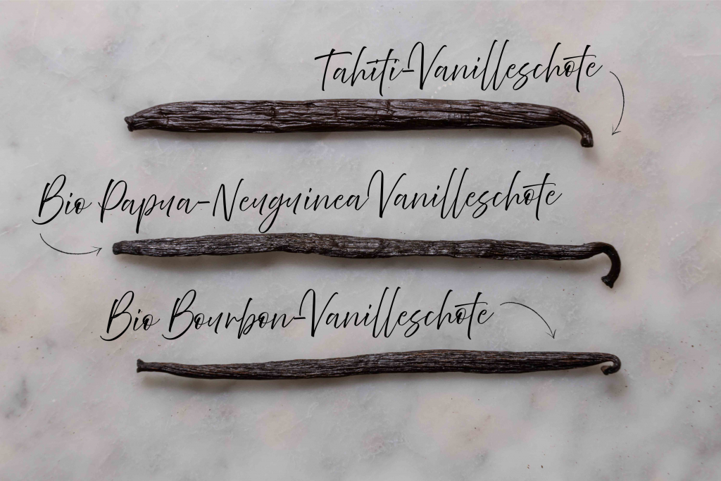 Tahiti-Vanille hingegen gehört zu einer anderen Art, der Vanilla tahitensis. Sie wird vor allem auf Tahiti und anderen polynesischen Inseln angebaut und zeichnet sich durch ein blumigeres, fruchtigeres Aroma und ein komplexeres, fast parfümartiges Duftprofil aus.